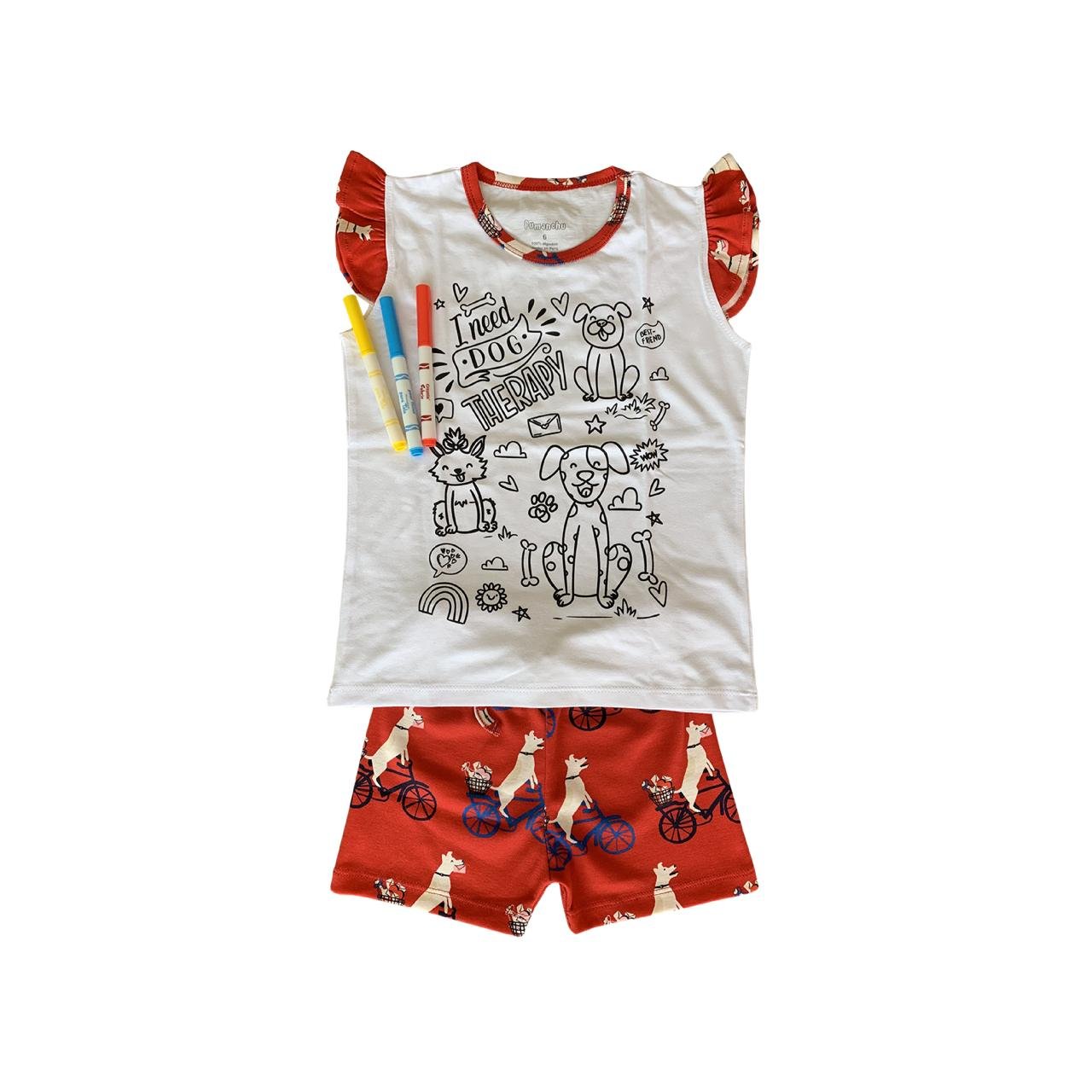 Pijama infantil confeccionada en 100 % algodón orgánico, hipoalergénica, suave y transpirable, ideal para el descanso nocturno. Incluye diseños para colorear que estimulan la creatividad de los niños, con crayones especiales para tela que no se borran al lavar. Hecha en Perú, con un diseño ligero y cómodo, perfecta para climas cálidos y para dormir o disfrutar en casa.